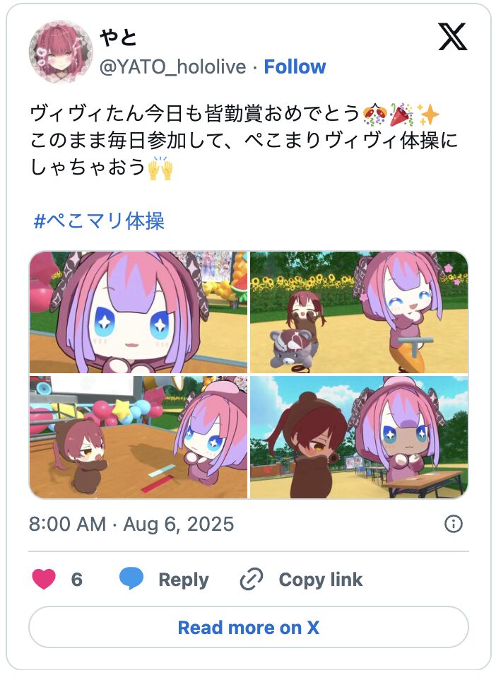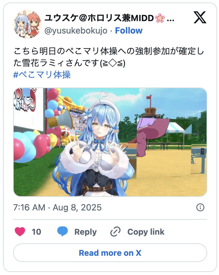 ホロライブファンの間で話題になっているぺこマリ体操