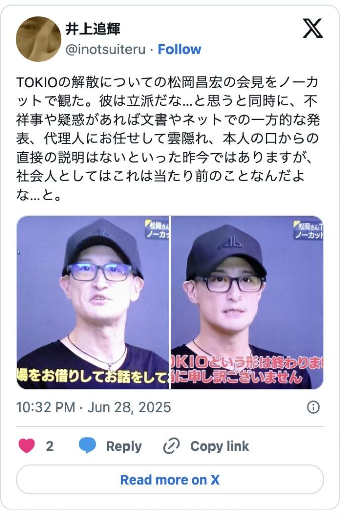 2025年6月25日にTOKIOの解散ニュースが発表されました。
